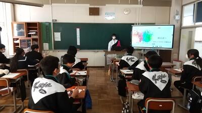 課題解決に向けて粘り強く考えたり、グループで自分の考えを伝えあったりと、熱心に授業に取り組むことができていました。明るく前向きに頑張る生徒の姿にお褒めの言葉をいただきました。