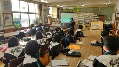 1年生の「総合的な学習の時間」の授業では、興味・関心のある職業について調べ、調べたことをプレゼンテーションソフトでまとめる活動を行ってきました。そして、23日(木)の5・6時間目には、1年生を複数のグループに分け、調べたことをグループ内の友達に伝える発表会を実施しました。