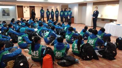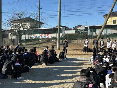 グラウンドで実行委員を中心に出発式を行い、裏磐梯スキー場に向けて出発しました。
