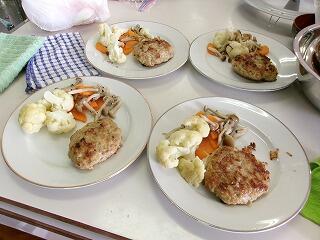 みんな大好きハンバーグでした!蒸した野菜の盛り合わせも美味しそうです。