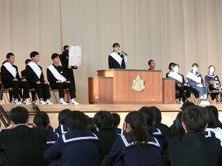立会演説会では立候補者の1人1人が、久慈中学校をどのように善くしていきたいのか、