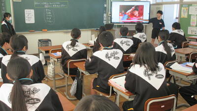 講師の先生をお招きして、栄養に関する学習をタブレットを使用して行いました。